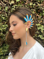 Estos hermosos pendientes representan a la gua- camaya, un ave emblemática de Colombia que aparece en la moneda de 200 pesos para simboli- zar la biodiversidad y la belleza natural del país. Su presencia busca promover la protección de las aves y reconocer su importancia para los ecosiste- mas colombianos. Algunas especies de esta ave exhiben los colores de la bandera colombiana en su plumaje, destacando los valores patrióticos. La guacamaya es un símbolo de la riqueza natural y la alegría autóctona de Colombia.